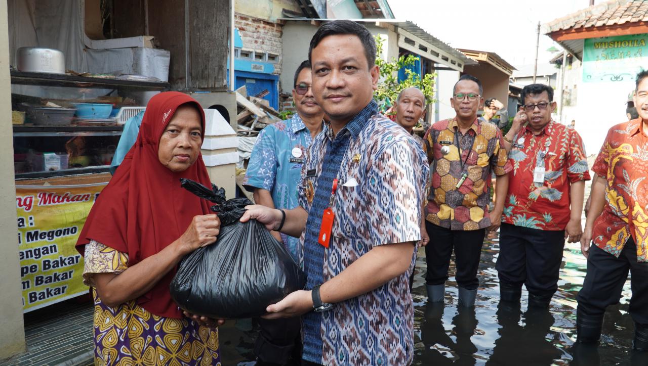 Wali Kota Pekalongan H. A Afzan Arslan Djunaid bersama ketua Korpri Kota Pekalongan Slamet Prihantono menyerahkan langsung bantuan tersebut kepada warga Bugisan.