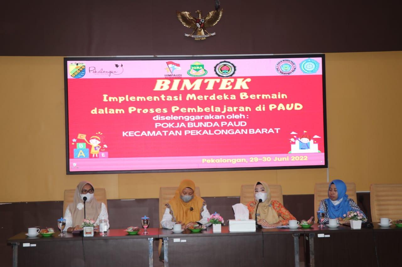 Kota Pekalongan- Sebanyak 45 guru Pendidikan Anak Usia Dini (PAUD) baik formal maupun non formal mengikuti Bimbingan Teknis (Bimtek) Implementasi Merdeka Bermain Dalam Proses Pembelajaran Di PAUD, Rabu (29/6)2022) diruang Jetayu.