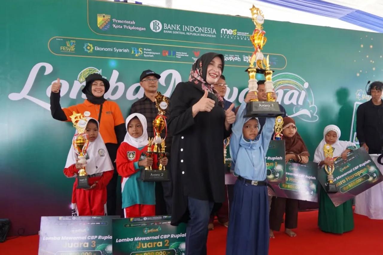 Kota Pekalongan, 23 Agustus 2025 - Wakil Wali Kota Pekalongan, Balgis Diab, menyerahkan hadiah kepada para pemenang lomba mewarnai yang menjadi salah satu rangkaian Festival Masyarakat Ekonomi Syariah Karesidenan Pekalongan.
